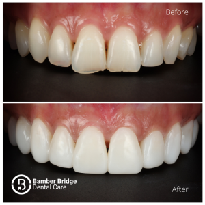 Composite bonding itself won’t whiten and so it is always best to make sure you are happy with the colour of your teeth before composite bonding is carried out. We would normally recommend you whiten your mile before you have any dental treatment on your front teeth. Whitening can sometimes help lift off superficial stains on your composite bonding. You can periodically top up your whitening to help ensure your natural teeth stay white.